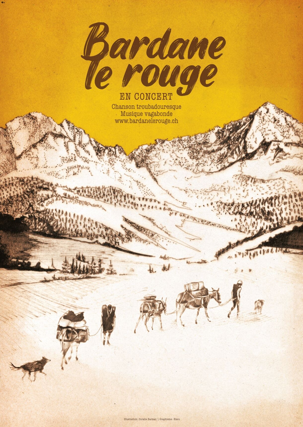 Fruit d’un lent voyage initiatique à travers les Alpes, le nouvel album de Bardane le Rouge chante l’errance sans compromis. Au rythme léger de la marche en pleine nature, leur musique acoustique puise au fond de la simplicité originelle du chant du monde, y cherchant un appui pour supporter les égarements de nos sociétés contemporaines. Les mots tranchent. Les notes soignent. Les histoires se racontent au son de l’accordéon et de la guitare. Authentiques, leurs voix enrobent les pensées pesantes mais lucides de mélodies étoilées pour les aider à s’envoler jusqu’aux oreilles éveillées. Et leur chemin de traverse emporte les rêveurs et leurs espérances loin des autoroutes tumultueuses et des monocultures mélancoliques.