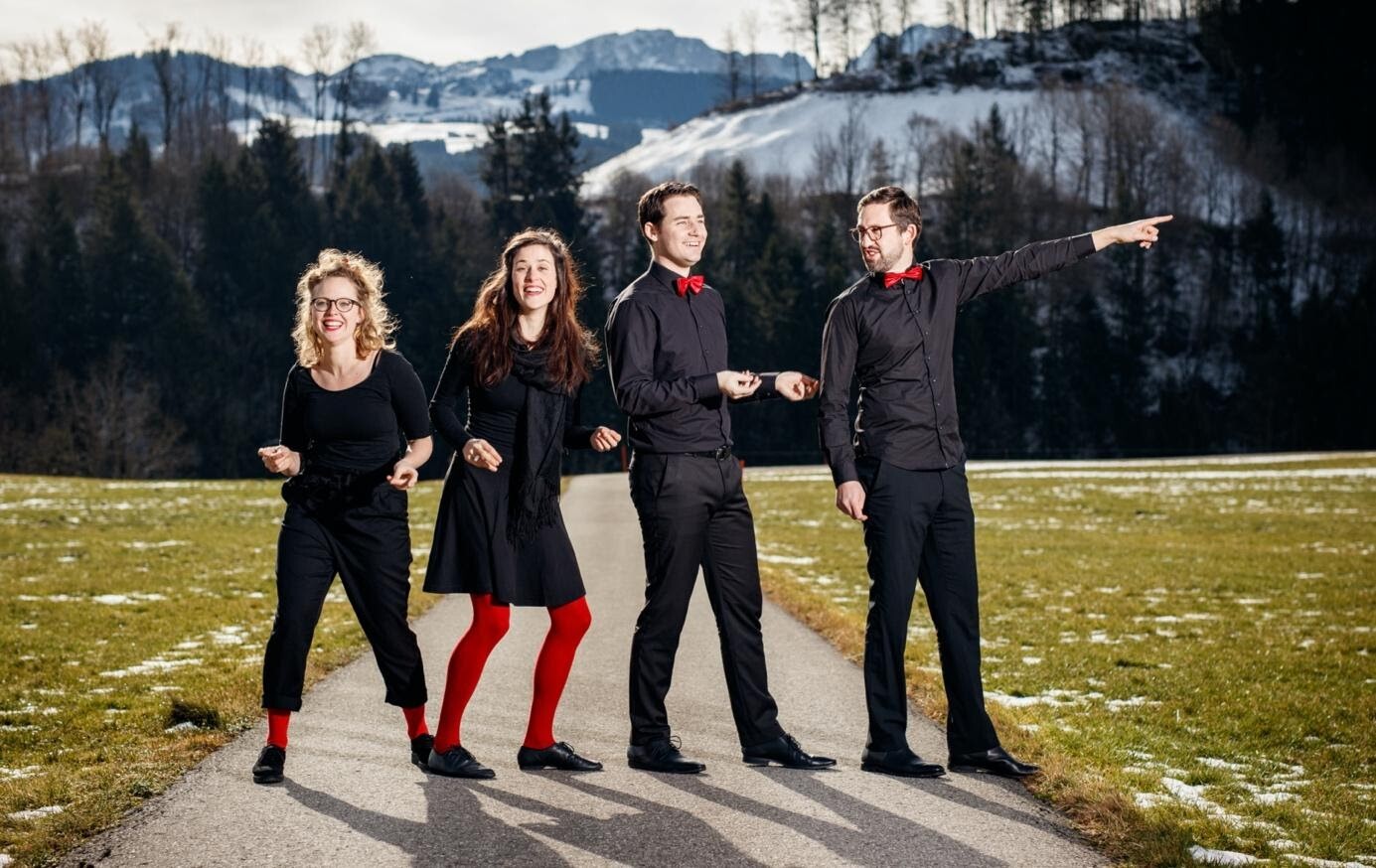 augenzwinkernd und traumwandlerisch singt das a cappella quartett lustvolle lieder – zwischen coffee & tea, stuhl & bank , fern & nah, wales & wallis