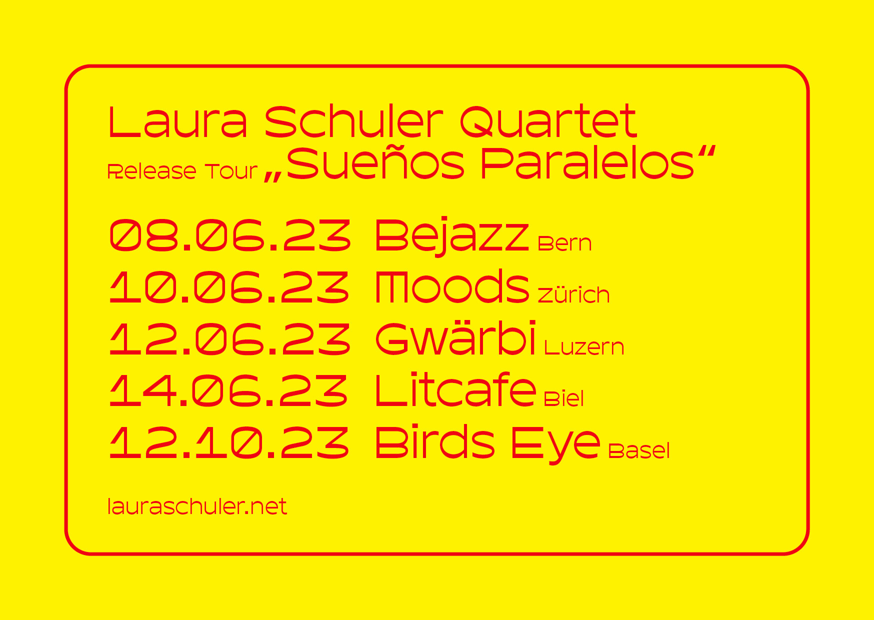 Das Laura Schuler Quartett besteht seit Winter 2018 und hat bereits einige Meilensteine hinter sich. Aus Anlass der Jazzwerkstatt Bern gegründet, spielte die Band u.A an den Festivals in Moers und Schaffhausen. Daneben wurde 2020 das Album „Metamorphosis“ (damals noch mit Philipp Gropper am Tenor) released. Während einem längeren Aufenthalt in New York, schrieb Schuler bald darauf neue Musik. Inspiriert von Erlebnissen und Eindrücken der vibrierenden Grossstadt entstand das zweite Album „Sueños Paralelos“. Auch in New York war es, wo sie Tony Malaby, mit dem die Band 2021 auf Tour war und das Album einspielte, kennen gelernt hat. Neu spielt nun aber Urs Müller an der Gitarre mit, und so beschreitet das Quartett abermals frische Wege. Dieser Schritt eröffnet neue Klänge und eine regelmässige Zusammenarbeit wird möglich.