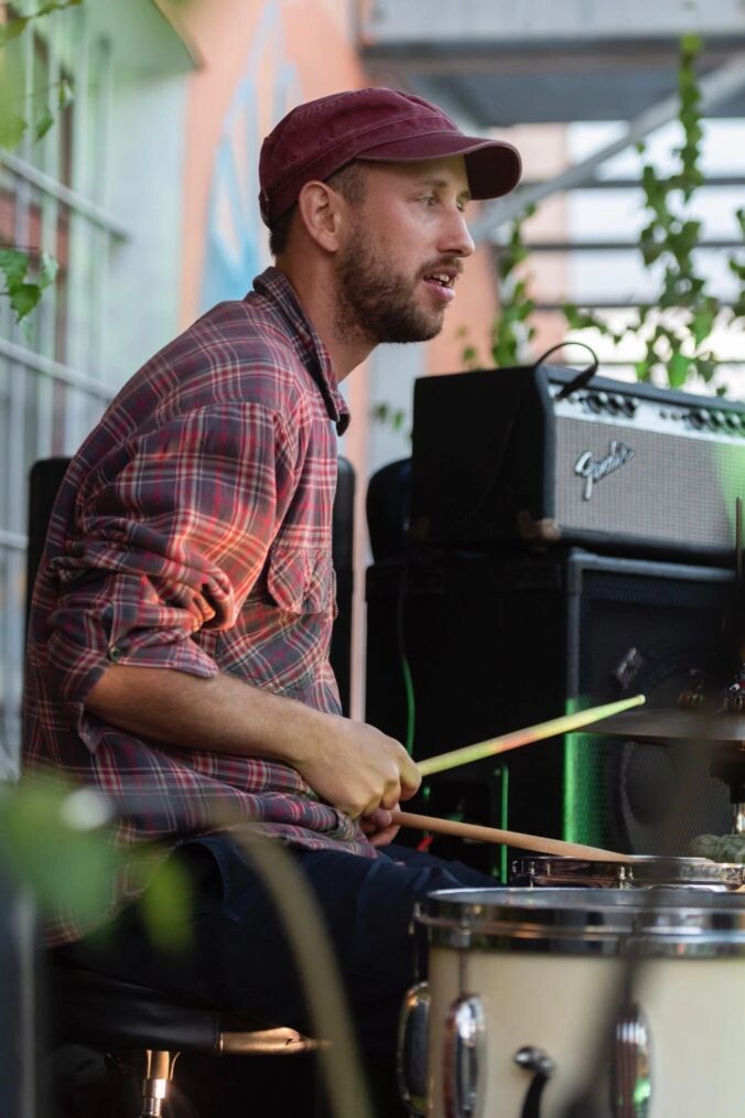 Hugo Panzer mit wuchtigen Rhythmen, Nicolas Engel mit atmosphärischen Tastenspiel und Airbios mit rauschenden Maschinen, eine Musik aus einer anderen Welt.