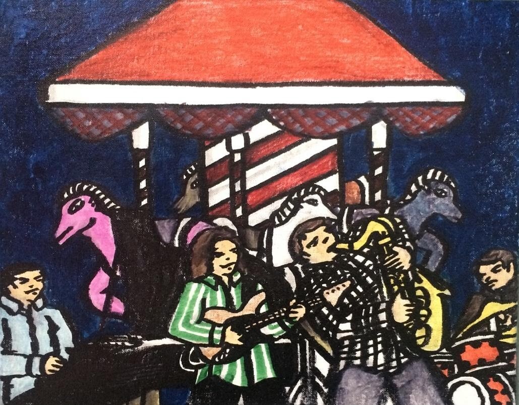 "Da, da spielt das Karussell!" Lachend bleiben die Menschen stehen. "Schön das Karussell wiederzusehen. Wo mag es bloß gestanden haben diese ganze Zeit?" Verspielte Kinder besteigen die Pferde und beginnen zu drehen bis das Lied verstummt, dann dürfen die nächsten aufsitzen. Das Karussell tanzt zur Musik bis tief in die Nacht und irgendwo, ganz woanders präsentiert Pino Zortea’s Jazzkarussell am 7.Mai 2021 ihre Debut-CD im Literaturcafé Biel.