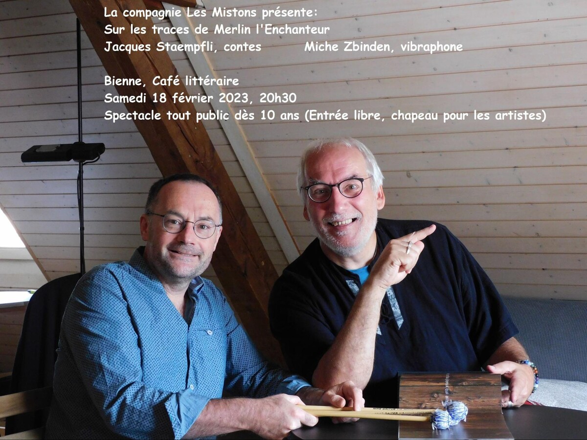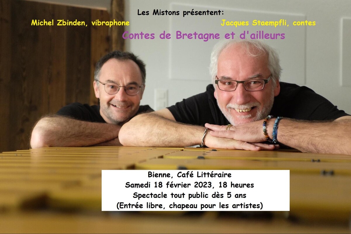 C'est l'histoire de deux mistons, deux potes, deux compagnons qui nous emmênent à la découverte de nombreux pays et cultures, au travers de contes et de musique. Dans les histoires que Jacques aime raconter, il y a un panier de fruits, un ogre affamé, des banquets rabelaisiens, des korrigans bretons, des lutins jurassiens ou encore une vouivre d'Ajoie et du Doubs. Le tout est saupoudré de musique colorée par son compère Michel... Et soudain, le conte s'envole, l'histoire prend sa place, légère, drôle ou envoûtante selon les teintes que le musicien y appose... L'ambiance est dessinée, la musique emporte le conteur et le public avec elle au-delà des mots, là où la magie opère et offre un peu de rêve...