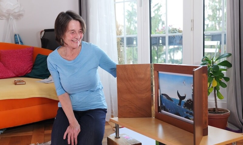 Karin Ackermann erzählt Bildergeschichten mit Musik für Menschen ab 2 Jahren.